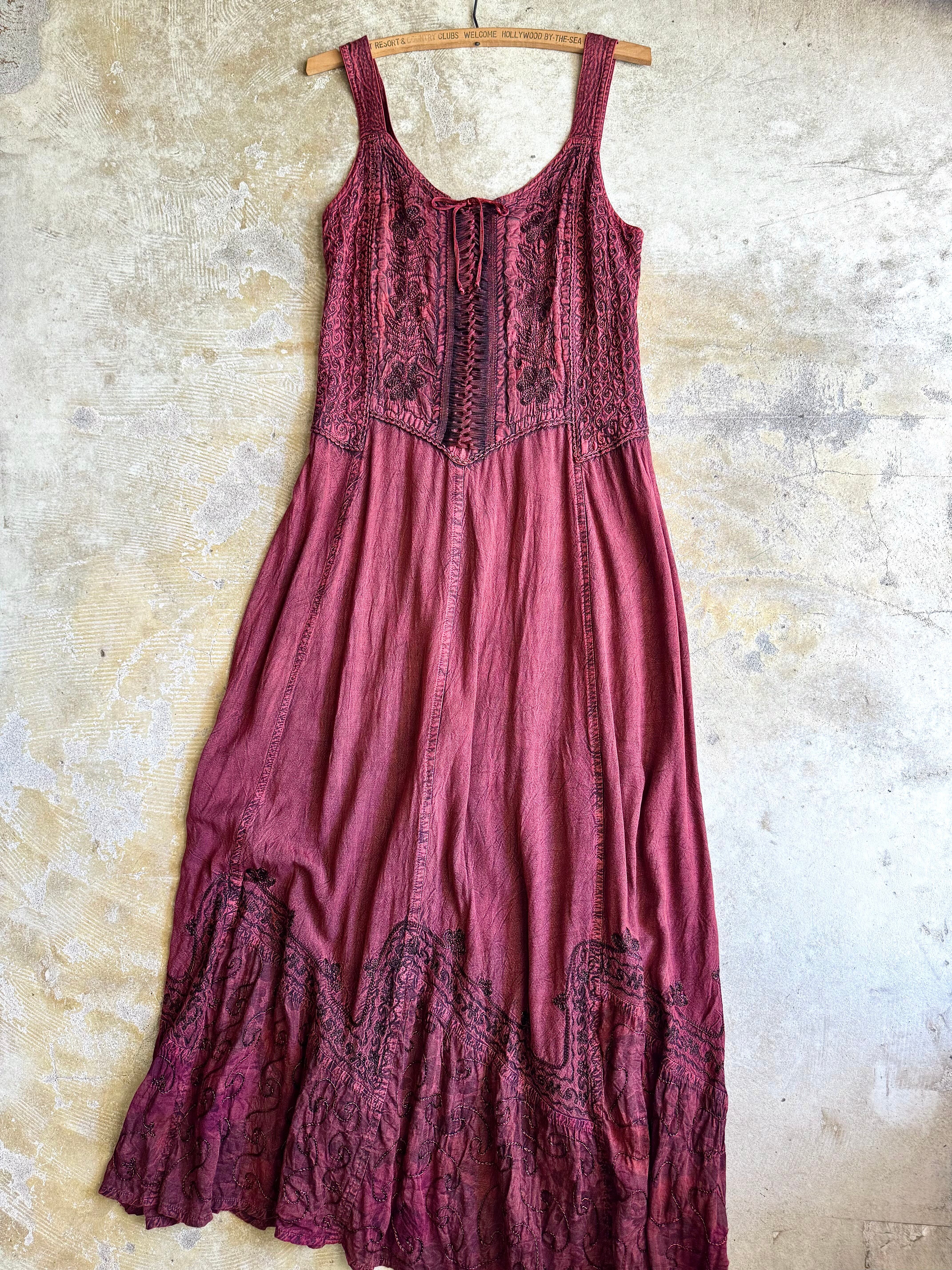 ノースリーブレーヨンドレス 刺繍 レースアップ USED