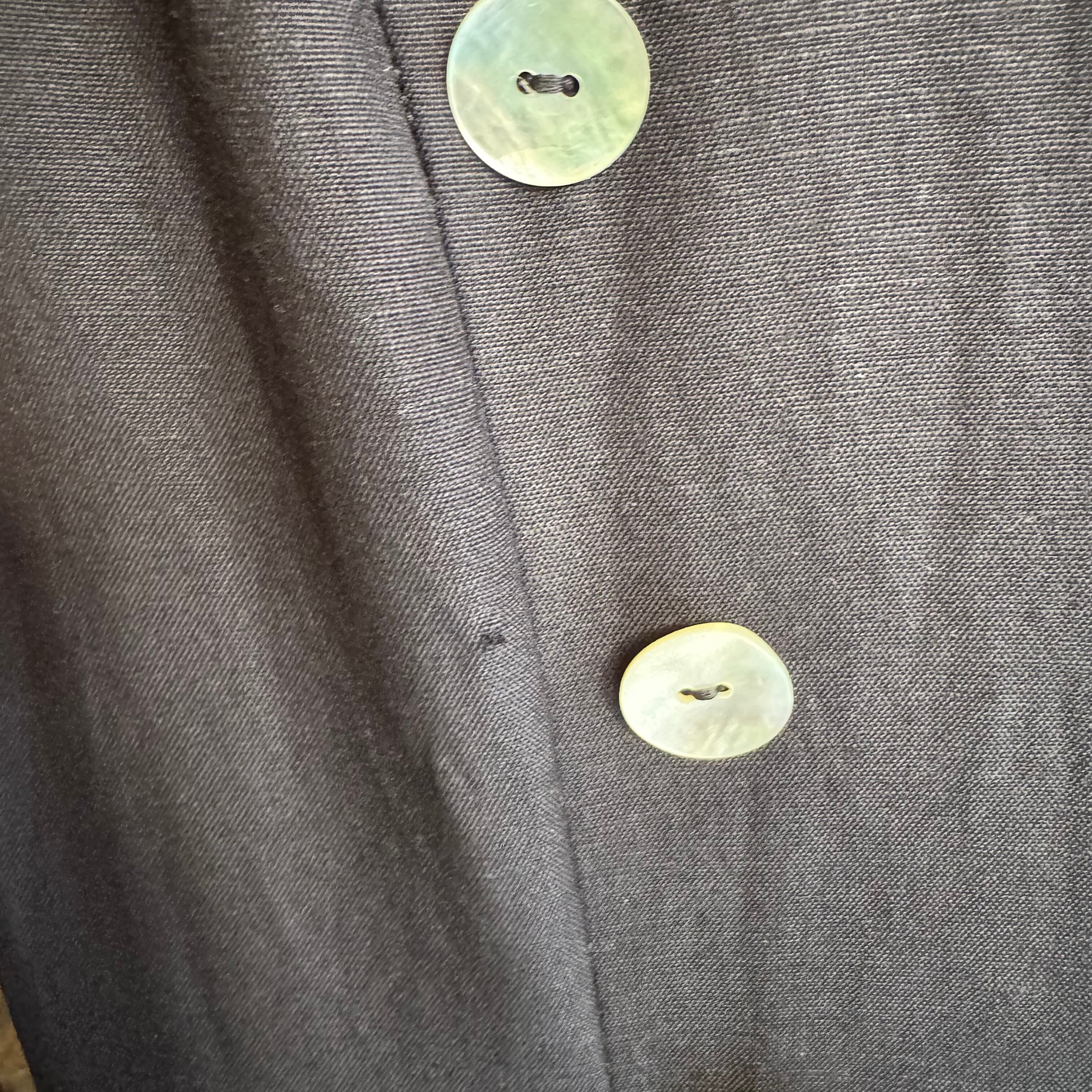 ご着用に支障をきたすような目立って大きな痛みや汚れはありませんが、フロントの右側、上から2番目のボタン付近に小さなダメージがあります。あまり目立つものではありませんが、7〜9枚目の画像でご確認下さい。また、古着特有の着用感は少しあります。古着に慣れている方であれば問題なくお楽しみいただけるかとは思いますが、神経質な方はご遠慮下さい。
