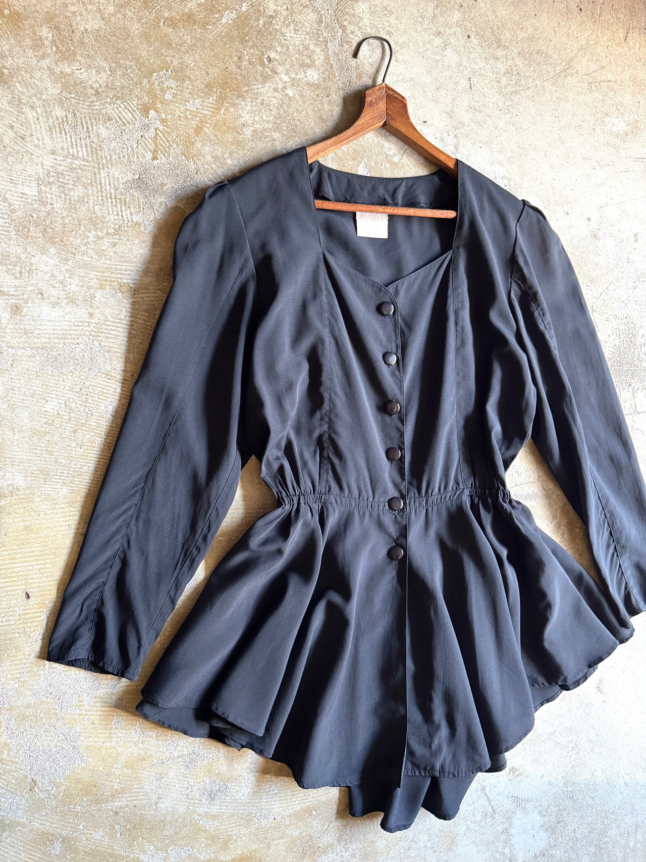 シックなブラックの色合いと、すっきりとした首元が素敵なジャケット。ウエストで切り替えとなる、しなやかなペプラムはセンターに向かって少し長くなるデザインになります。シャツ感覚で軽く使え、Tシャツ等にふわっと羽織るカジュアルなスタイリングもオススメです。さらりとしたしなやかな素材感です。
