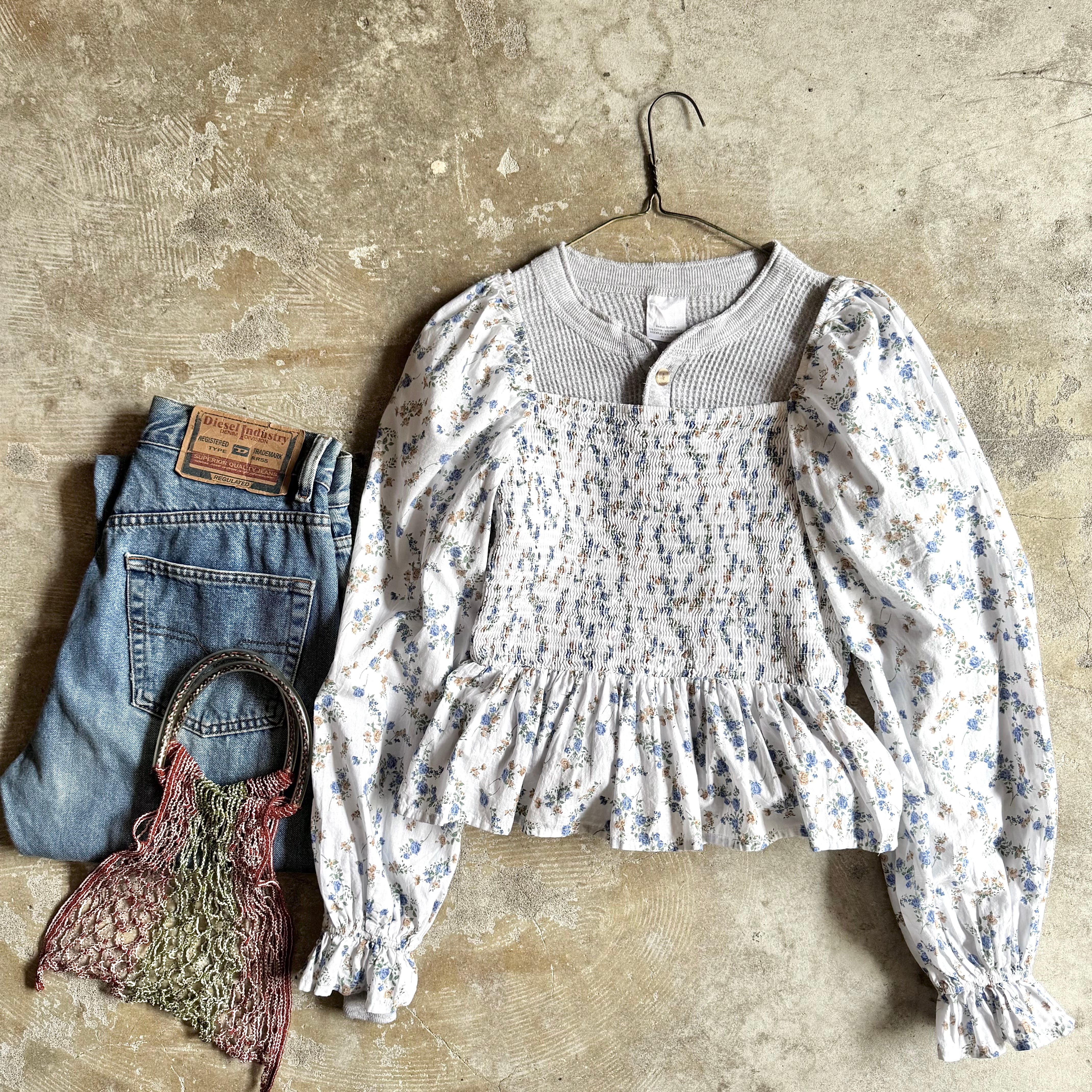 ボリュームスリーブ プルオーバートップス 小花柄 USED