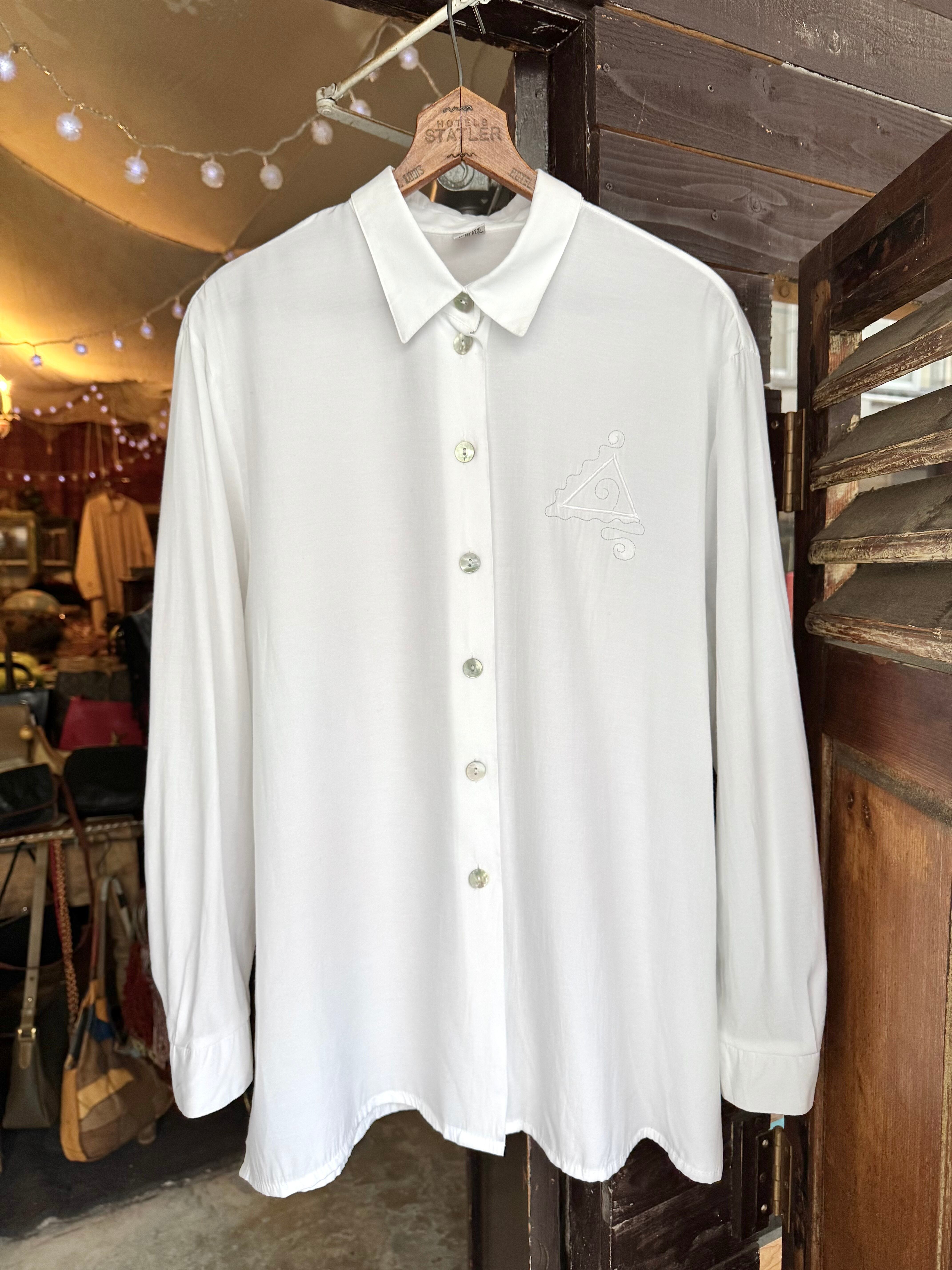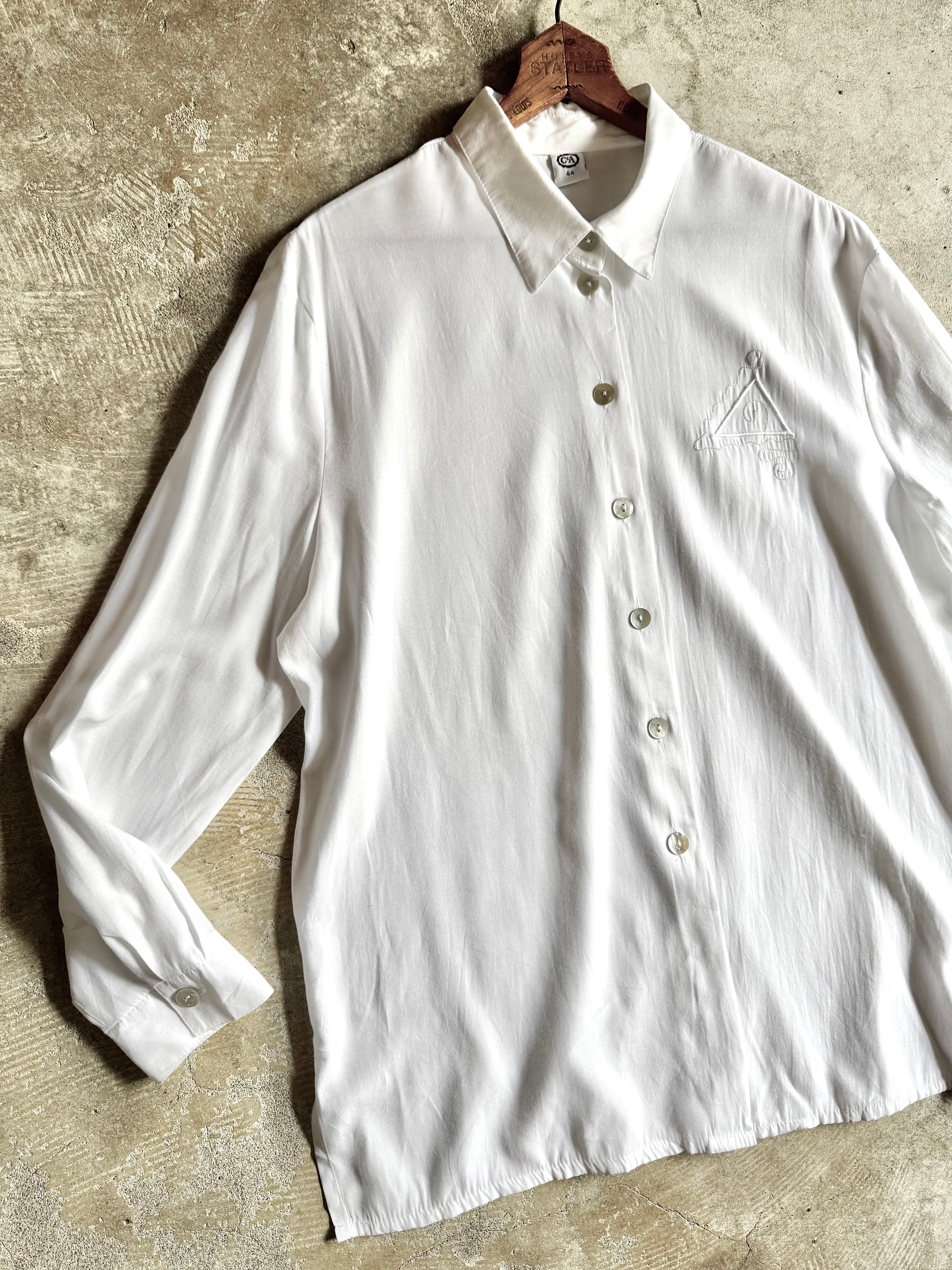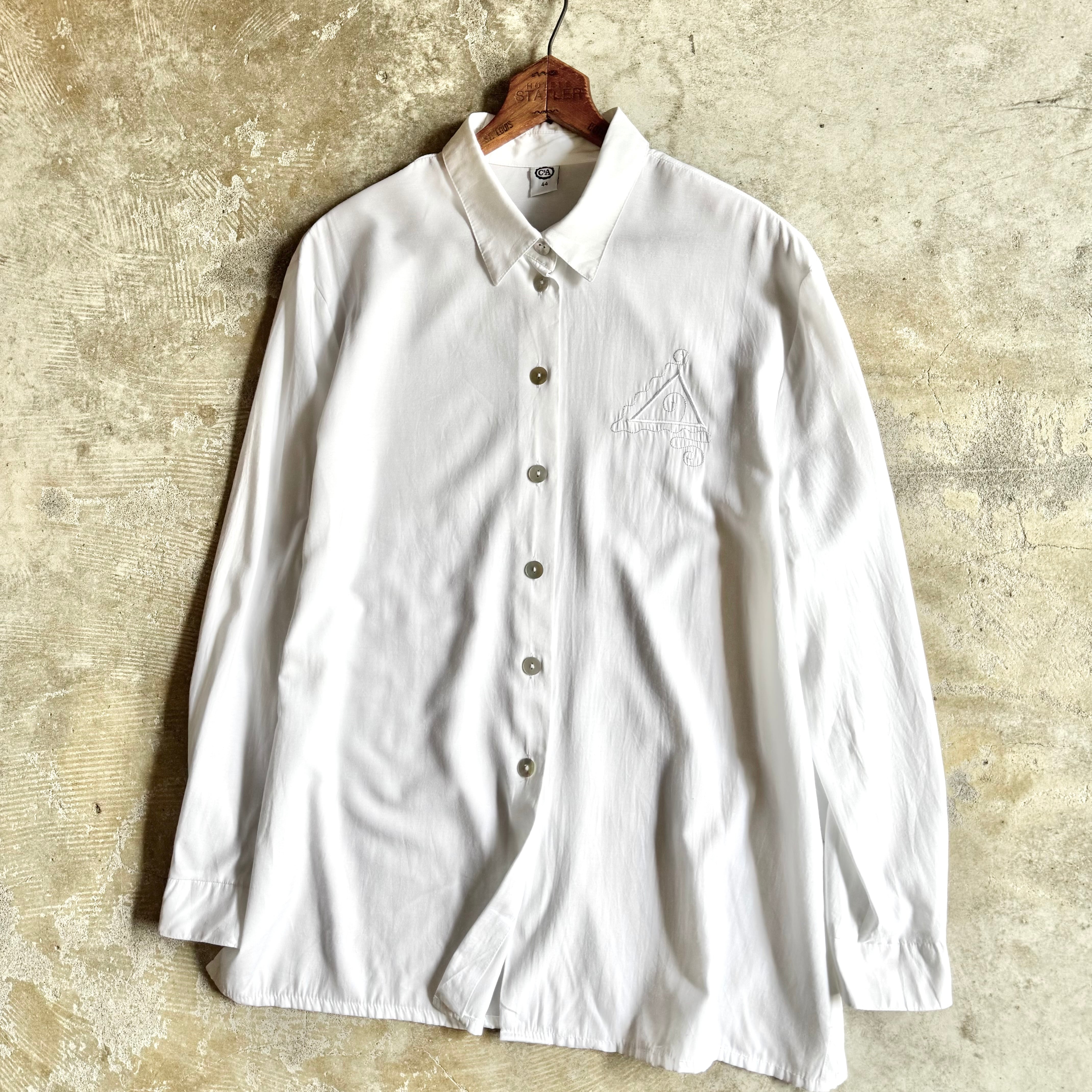 ホワイトレーヨンシャツ 胸刺繍 USED