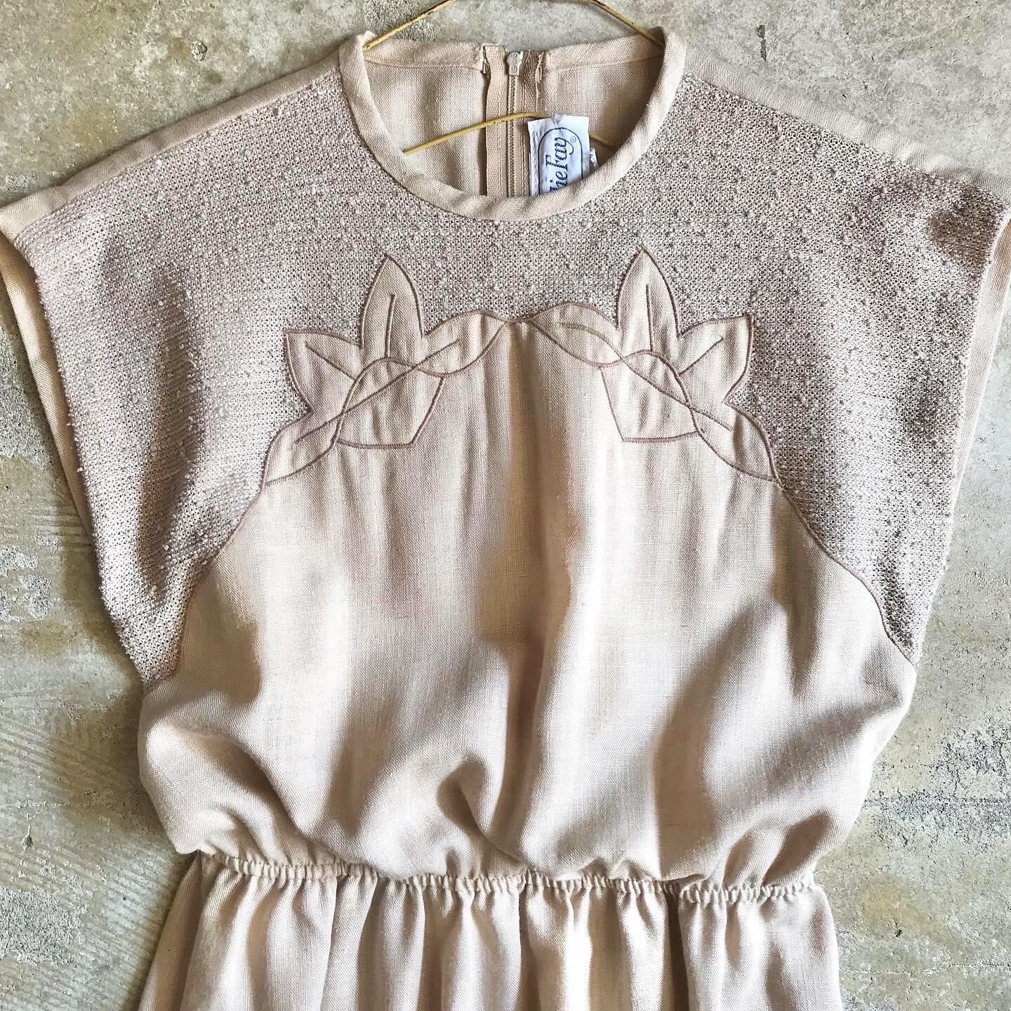 シンプルなデザインが素敵なフレンチスリーブワンピース。肩から胸元にかけての生地の切り替えと刺繍が印象的です。デニム等パンツとのコーディネートもオススメです。これからの季節にぴったりな、さらりとした肌触りのよい柔らかな素材感です。裏地は付いていませんので、パンツ等を合わせずにご着用の際は、ペチコート等インナーのご使用をオススメします。