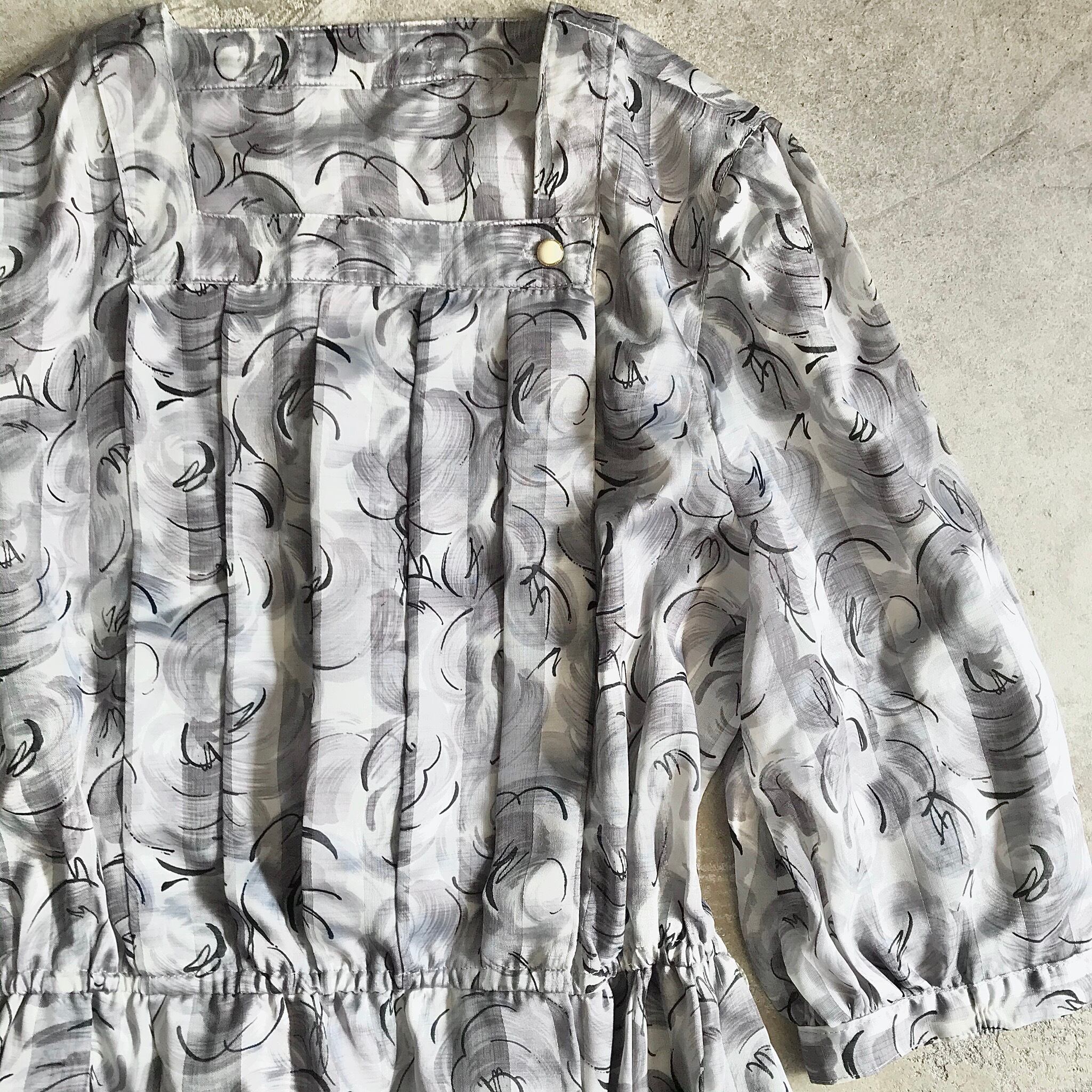 すっきりとしたスクエアネックが素敵なワンピース。シックな色使いの花柄が大人っぽい雰囲気です。少しふんわりとする袖のデザインも印象的です。さらりとしたしなやかな素材感です。スカート部分のみ、裏地が付いています。