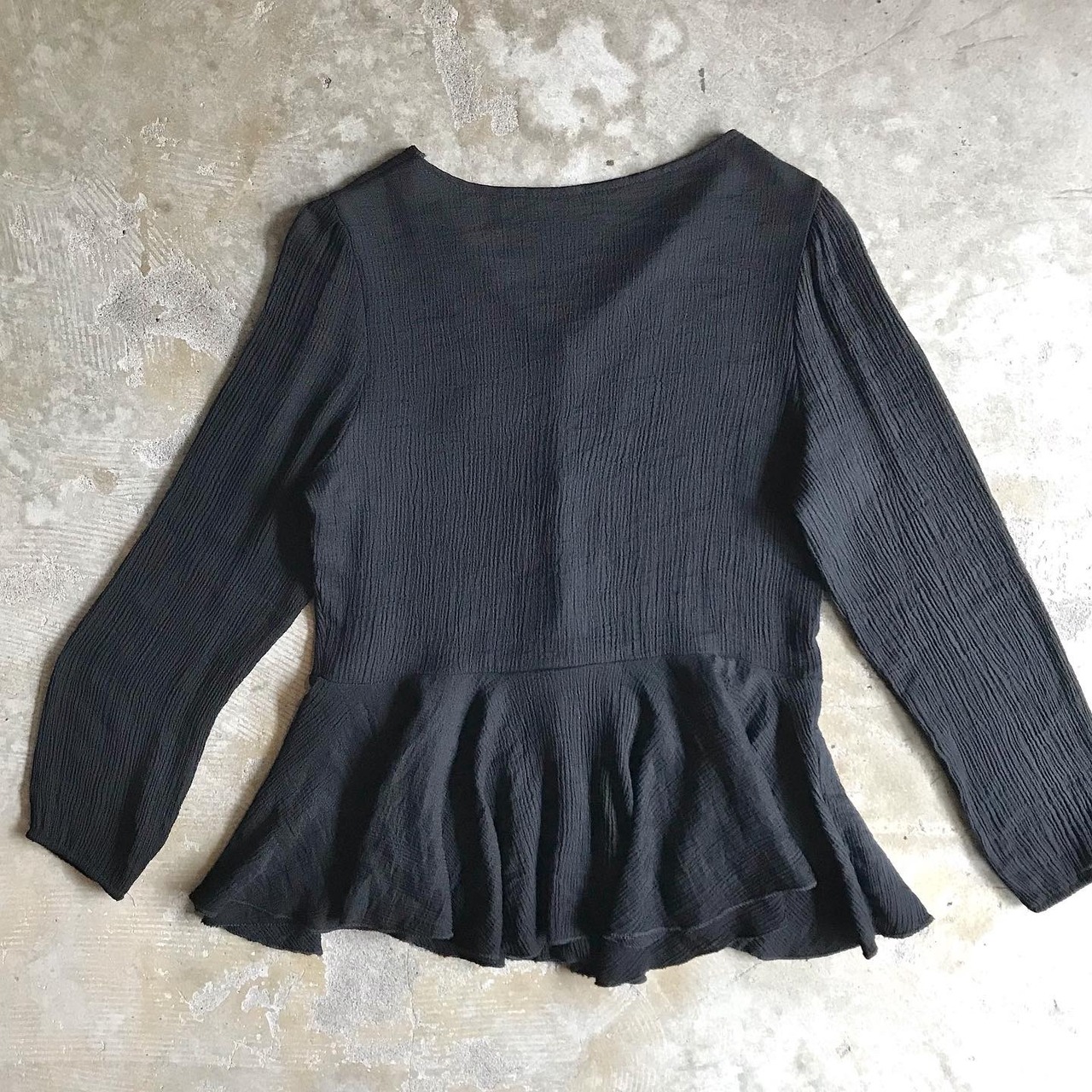 すっきりとした首元と裾のドレープのデザインが素敵なデザインジャケット。少しだけ透け感のある柔らかな素材で、薄手の羽織りアイテムや、軽めなブラウスのような感覚でお楽しみいただけます。シックなブラックなので、女性らしいデザインですがカジュアルにもきれいめにも活躍してくれそうです。