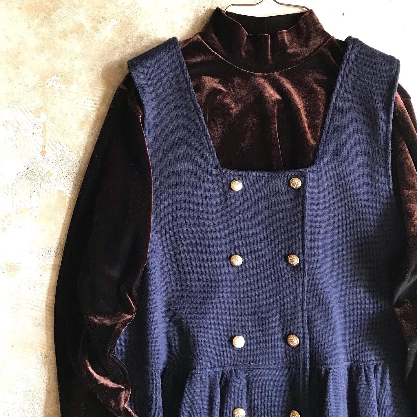 【SOLD OUT】ジャンパースカート 金ボタン 無地 USED