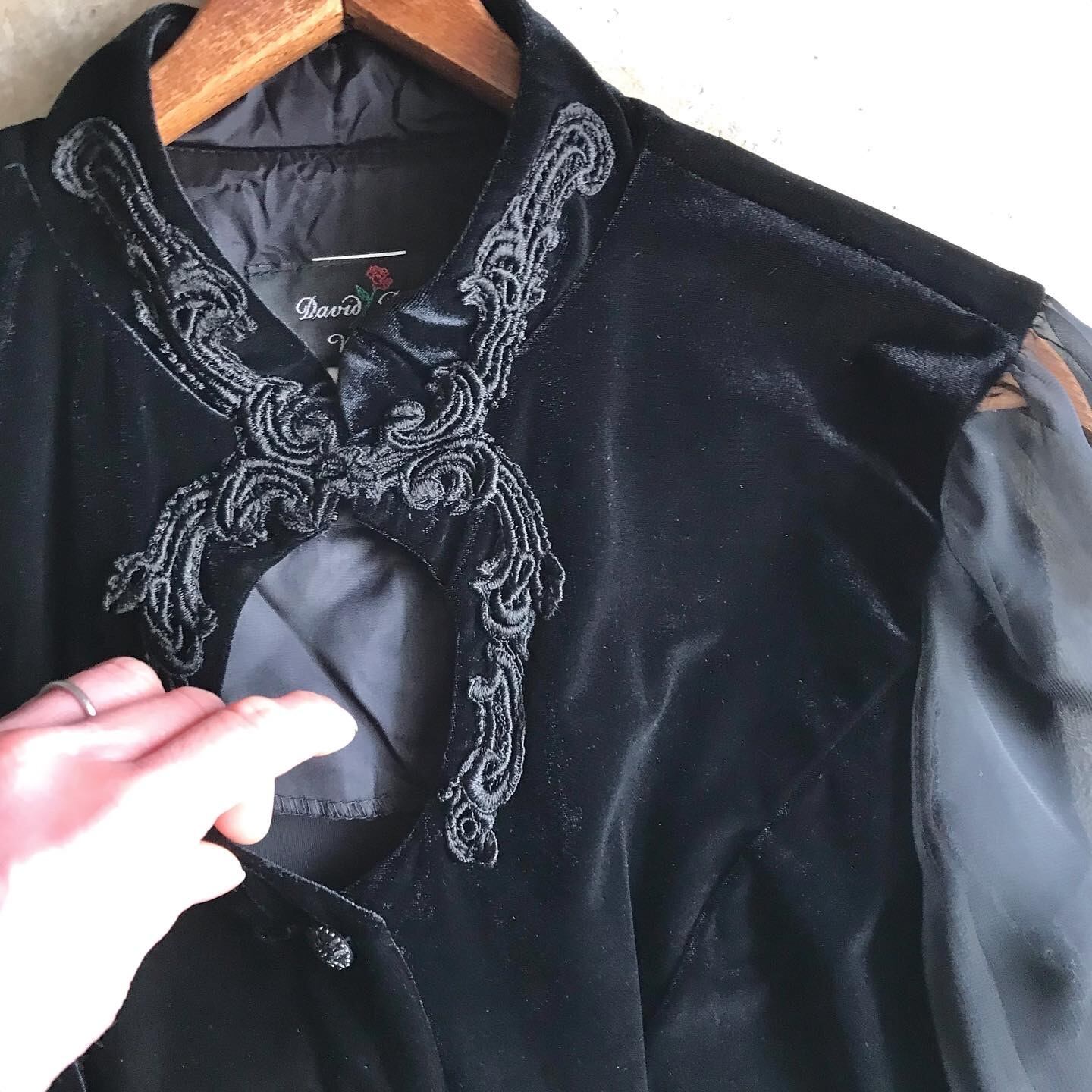 【SOLD OUT】ブラックベロアブラウス 袖シフォン USED
