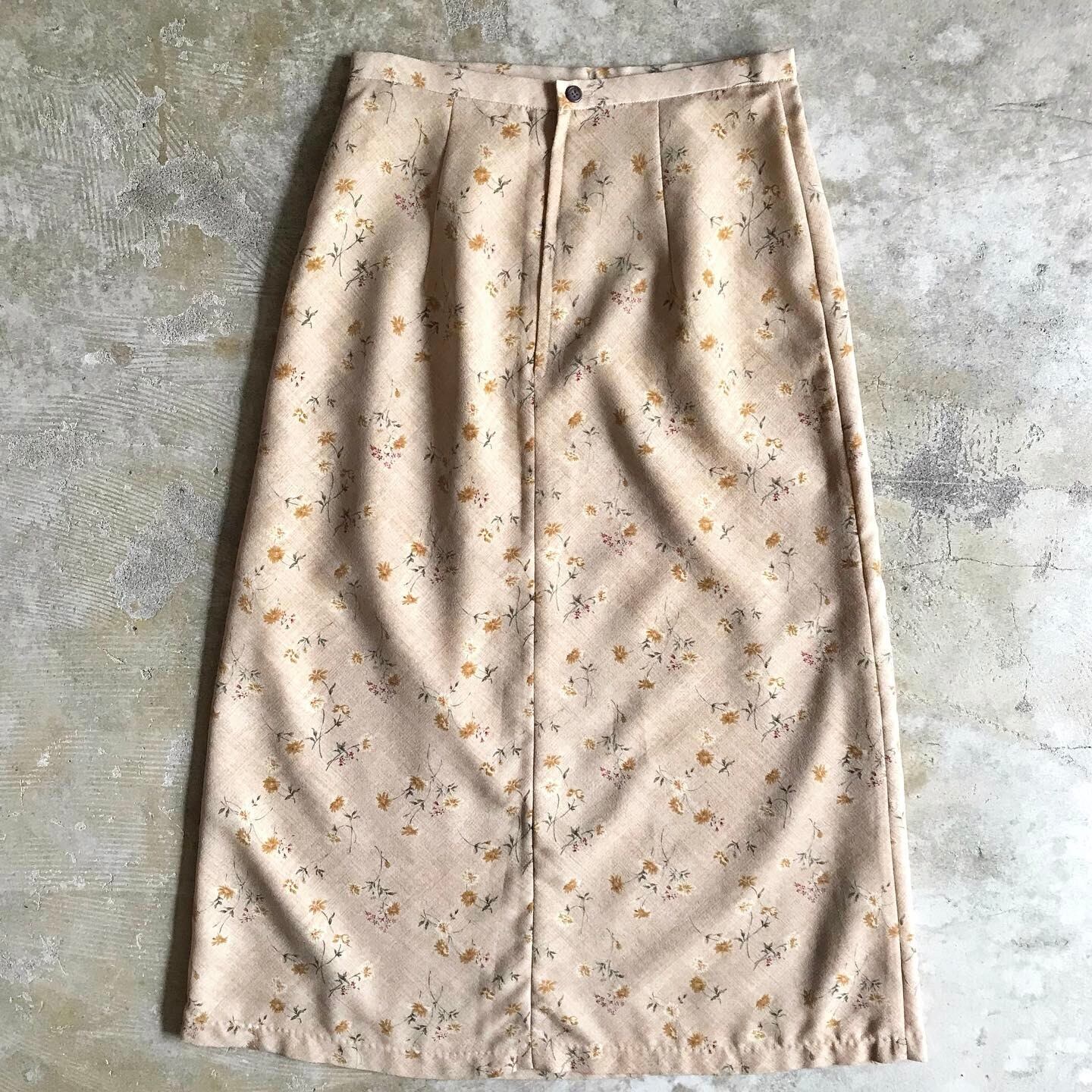 優しいベージュ系の色合いが素敵なロングスカート。上品に描かれた花柄が印象的です。すっきりとした広がりすぎないシルエットが大人っぽく、きれいめにもカジュアルにもお楽しみいただけます。Tシャツとのシンプルなコーディネートもオススメです。ほぼ通年でお楽しみいただける、さらりとしたしなやかな素材感です。裏地が付いています。