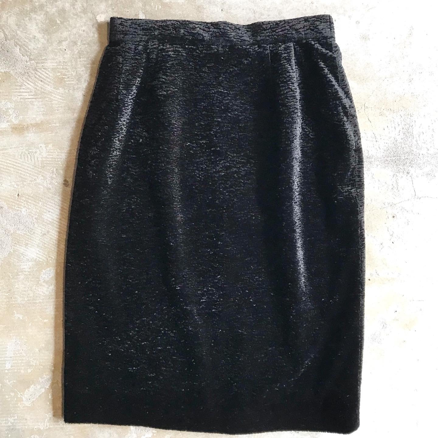 少し毛足の長い存在感のあるベロアが素敵なブラックスカート。すっきりとしたシルエットが大人っぽい雰囲気です。スウェットやニットなど、様々なトップスと相性が良く、きれいめにもカジュアルにも様々なコーディネートで活躍してくれそうです。暖かみのある、柔らかなベロア素材です。裏地が付いています。