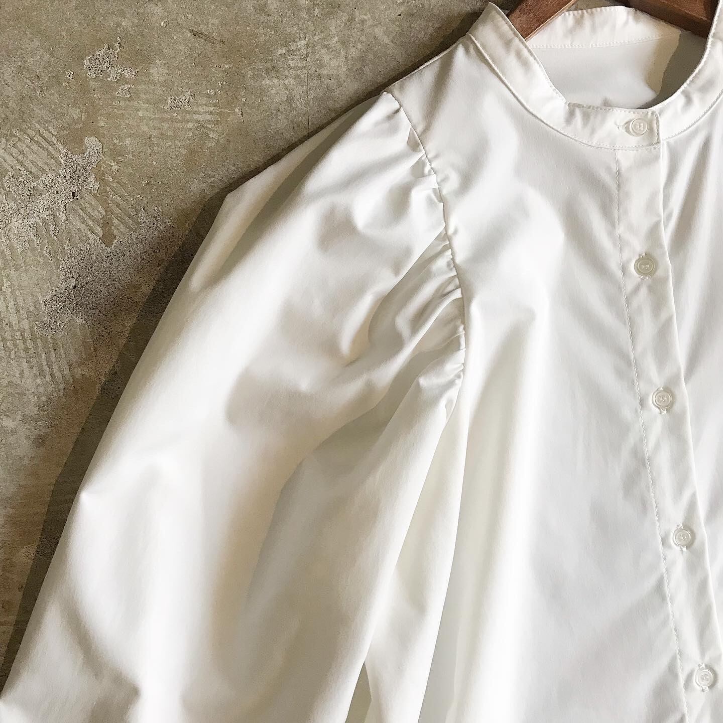 すっきりとしたノーカラーの首元と、ふんわりとした袖が素敵なチュニックブラウス。Aラインのゆるやかなシルエットと、長めな着丈が印象的です。生成りに近い柔らかなホワイト系の色合いが優しい雰囲気で、カジュアルにもきれいめにも様々なコーディネートでお楽しみいただけます。お持ちのベルトでウエストをキュッとマークするのもオススメです。少しハリのある、さらりとしたしなやかな素材感です。
