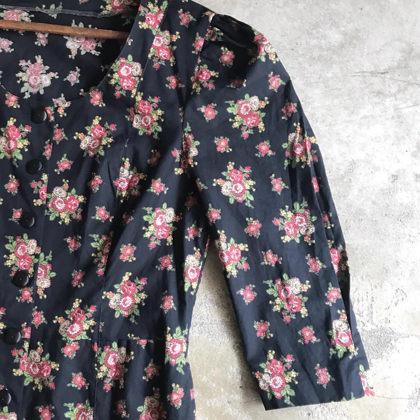 【SOLD OUT】前開きワンピース 七分袖 花柄 USED