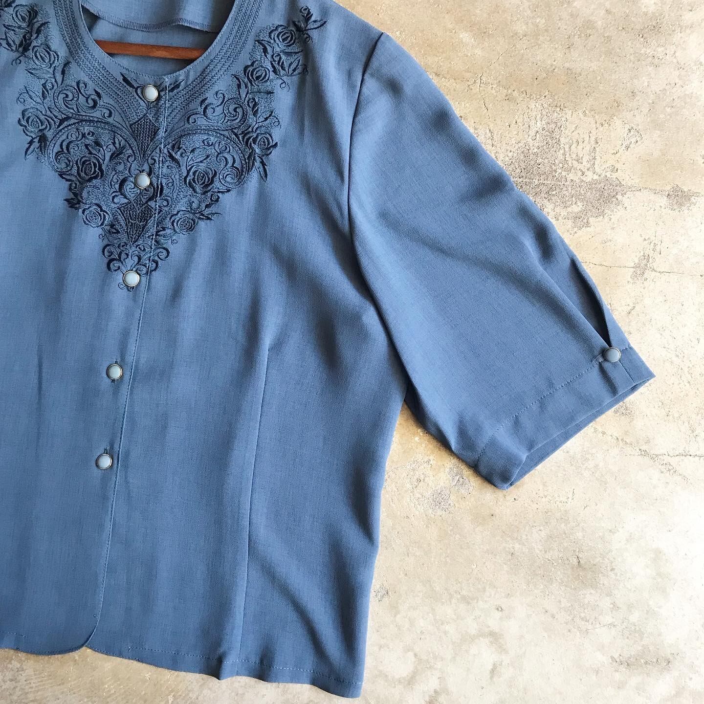 【SOLD OUT】ノーカラーブラウス 刺繍 USED
