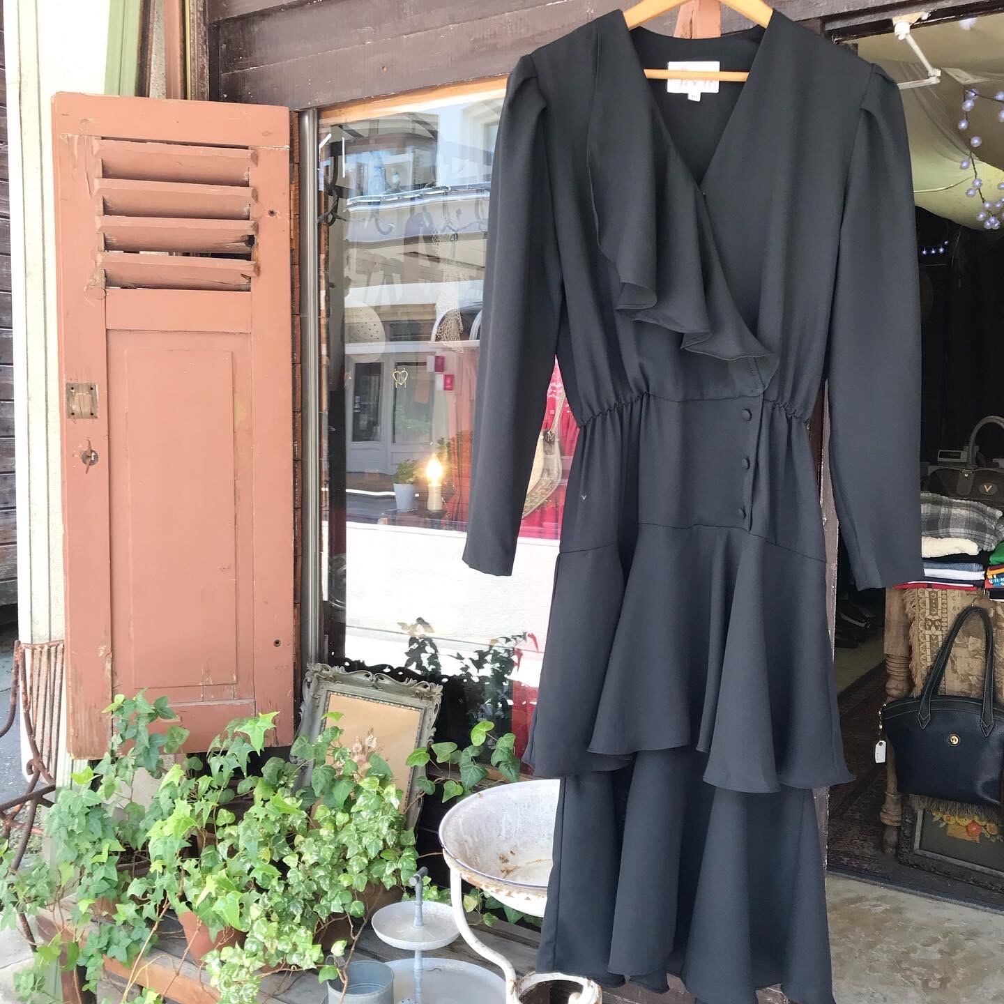 すっきりとした首元とシックなブラックが素敵なワンピース。ふんわりとした袖と、フロントとウエスト周りのデザイン、スカート部分のティアードが印象的です。ブラックなので甘くならずに大人っぽくお楽しみいただけます。カジュアルに普段使いはもちろん、きちんとしたお席のドレスとしてもオススメです。さらりとしたしなやかな素材感です。ティアード部分は2枚重ねになっています。