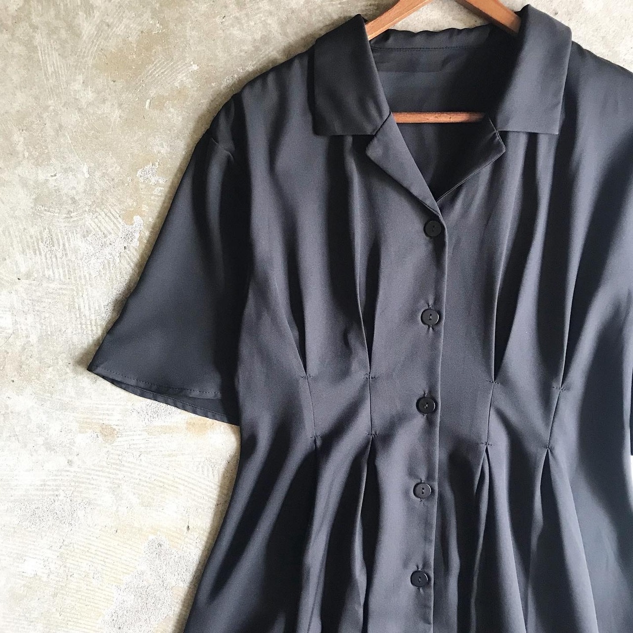 【SOLD OUT】オープンカラーブラックワンピース 前開き USED