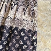 シックなペイズリー柄が落ち着いた雰囲気のワンピース。両サイドに並んだボタンのデザインが印象的です。ふんわり広がらず自然に下に落ちるシルエットが大人っぽく、ボタンを裾から少し上まであけて、パンツとのレイヤードコーデもお楽しみいただけます。さらりとしたしなやかな素材感です。裏地は付いていません。あまり透け感はありませんが、両サイドがボタンのデザインの為、インナーやボトムス等との重ね着をおすすめ致します。
