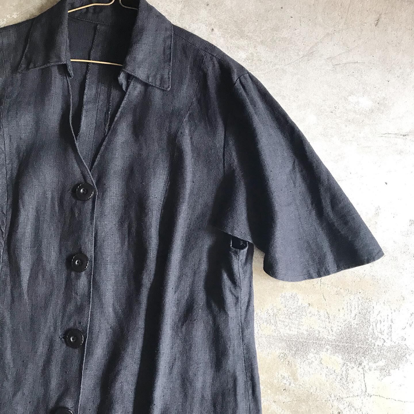 【SOLD OUT】ブラックリネンドレス 前開き USED