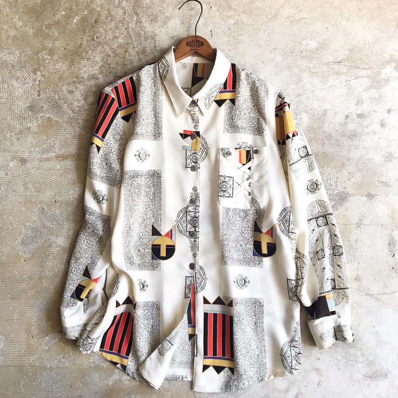 【SOLD OUT】デザインシャツブラウス 総柄 USED