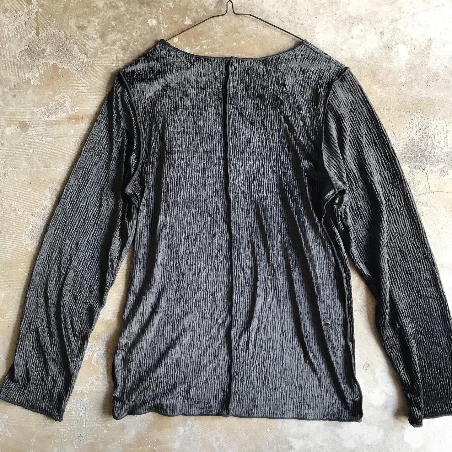 光の当たり方で色味の雰囲気が変わる、大人っぽいグレーが素敵なベロアトップス。