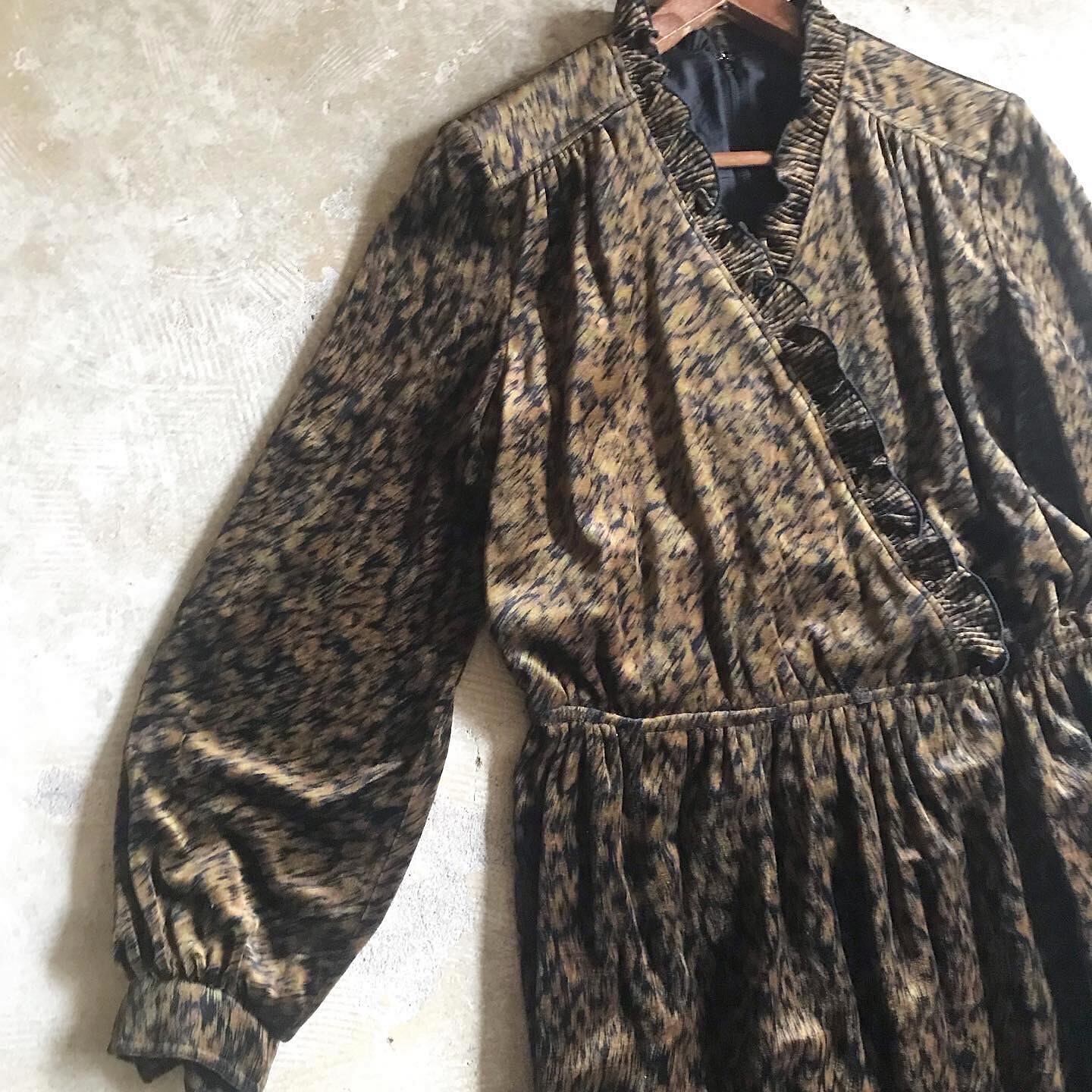 【SOLD OUT】ベロアカシュクールワンピース 総柄 USED