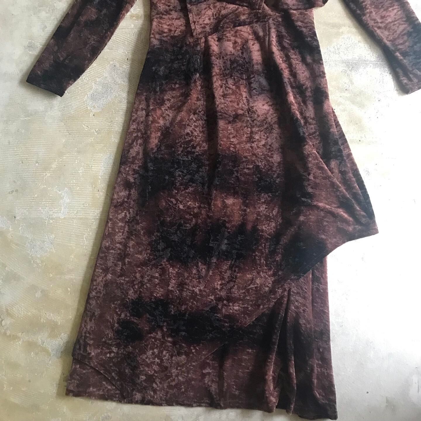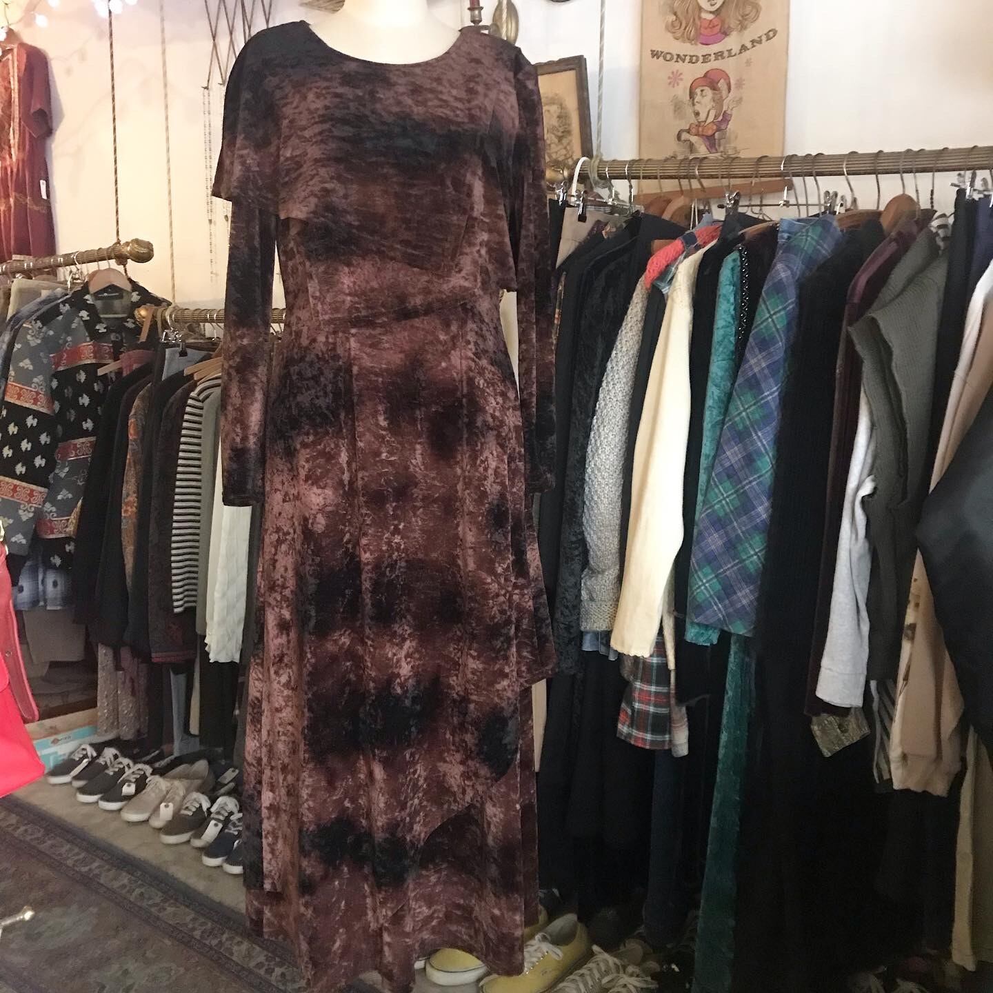 光の当たり方で微妙に表情が変わるベロア独特の色合いがステキなワンピース。肩、フロント、背中、スカート部分の裾等、ランダムに重なった布がつくり出すデザインが印象的です。ふんわり広がりすぎず、自然に下に落ちるシルエットが大人っぽく、様々な雰囲気でお楽しみいただけます。柔らかくあたたかみのあるベロア素材です。裏地は付いていませんが透け感はありません。