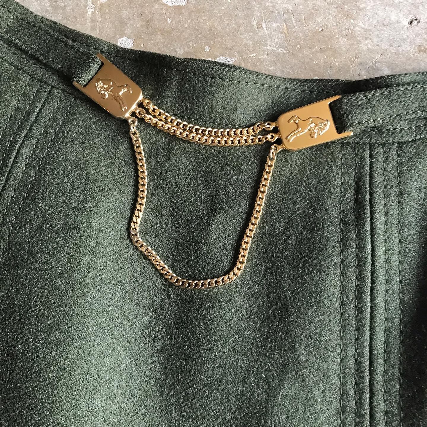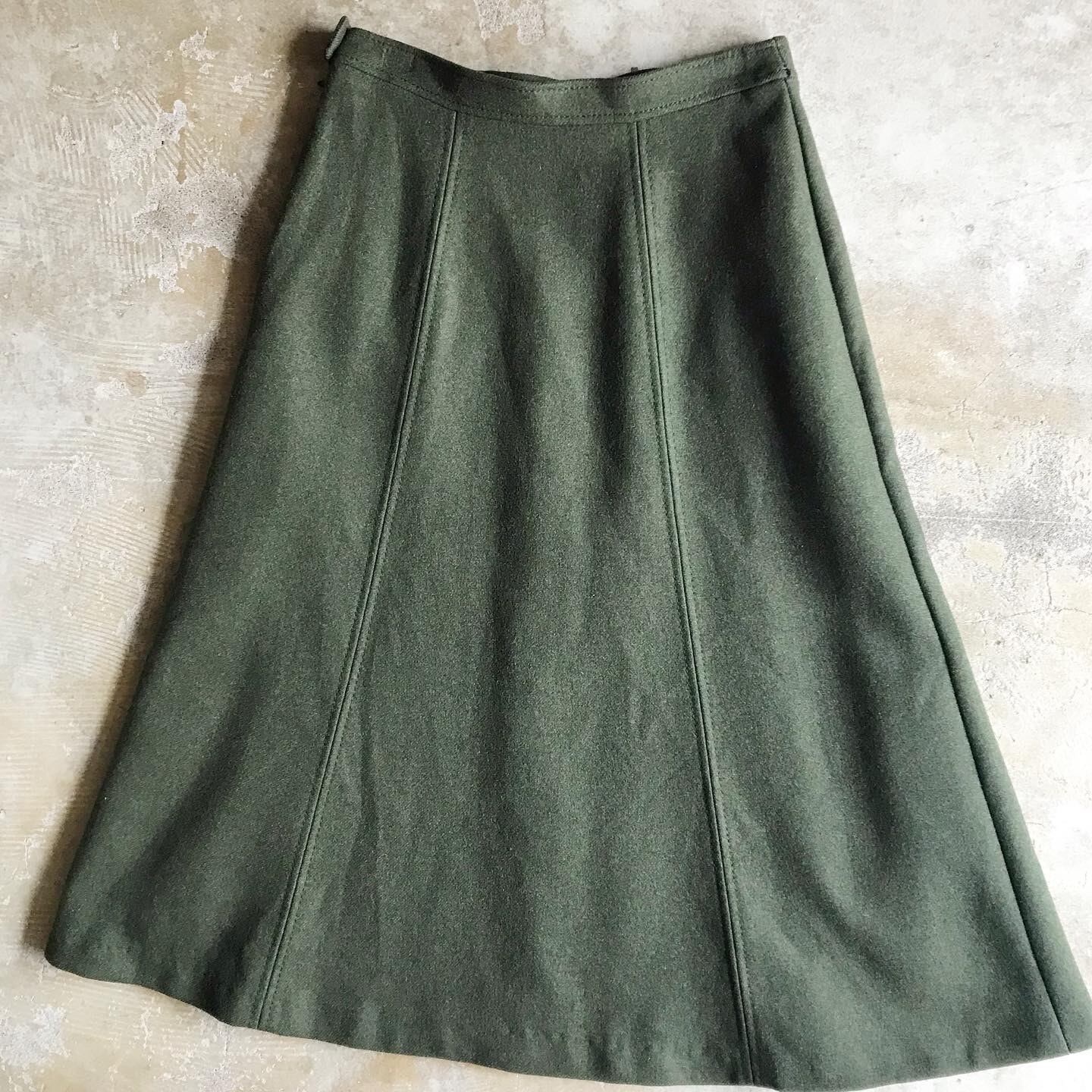 クラシックな雰囲気が素敵なウールスカート。ウエストのチャームがアクセントになっています。しっかりとしたウール素材がつくり出す、ふんわり広がりすきず自然に落ちるシルエットが大人っぽい雰囲気です。女性らしいコーディネートはもちろん、スウェット等カジュアルなアイテムと合わせるのもオススメです。裏地が付いています。