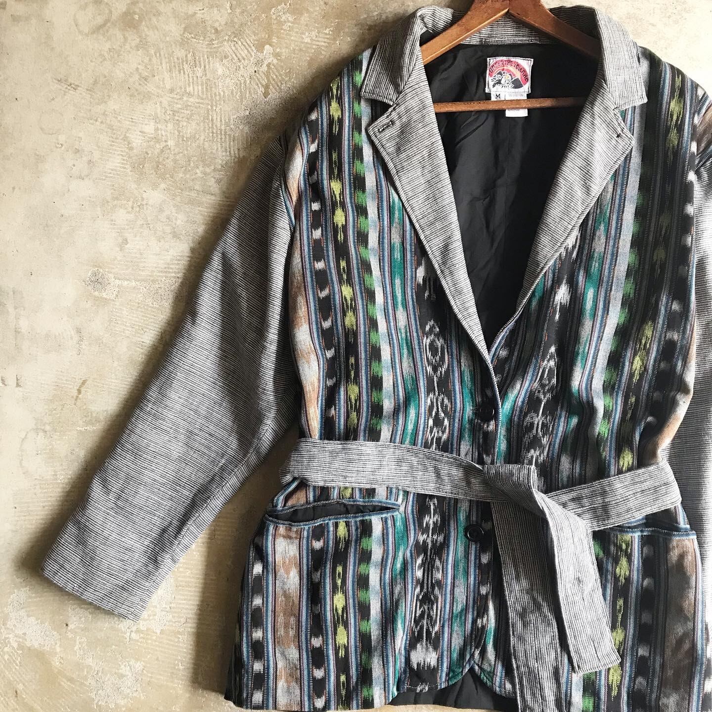 付属の紐ベルトでウエストマークができるデザインジャケット。春や秋のアウターとしてもオススメな、裏地が付いたしっかりとしたコットン素材です。肩が落ちるゆったりとしたシルエットが、様々なアイテムと相性が良く、大人っぽくもカジュアルにも幅広いスタイリングでお楽しみいただけます。