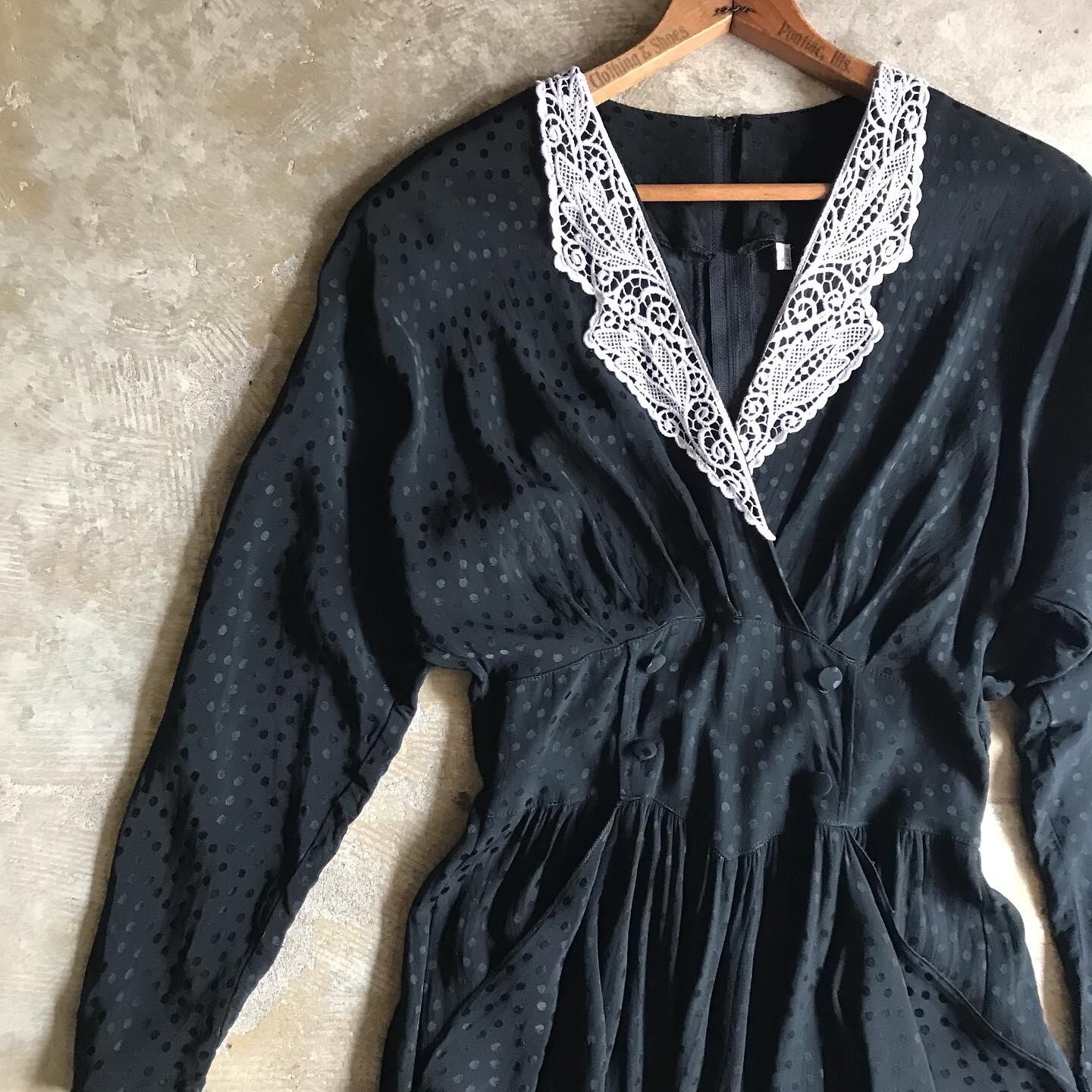 【SOLD OUT】デザインブラックワンピース 襟白レース USED