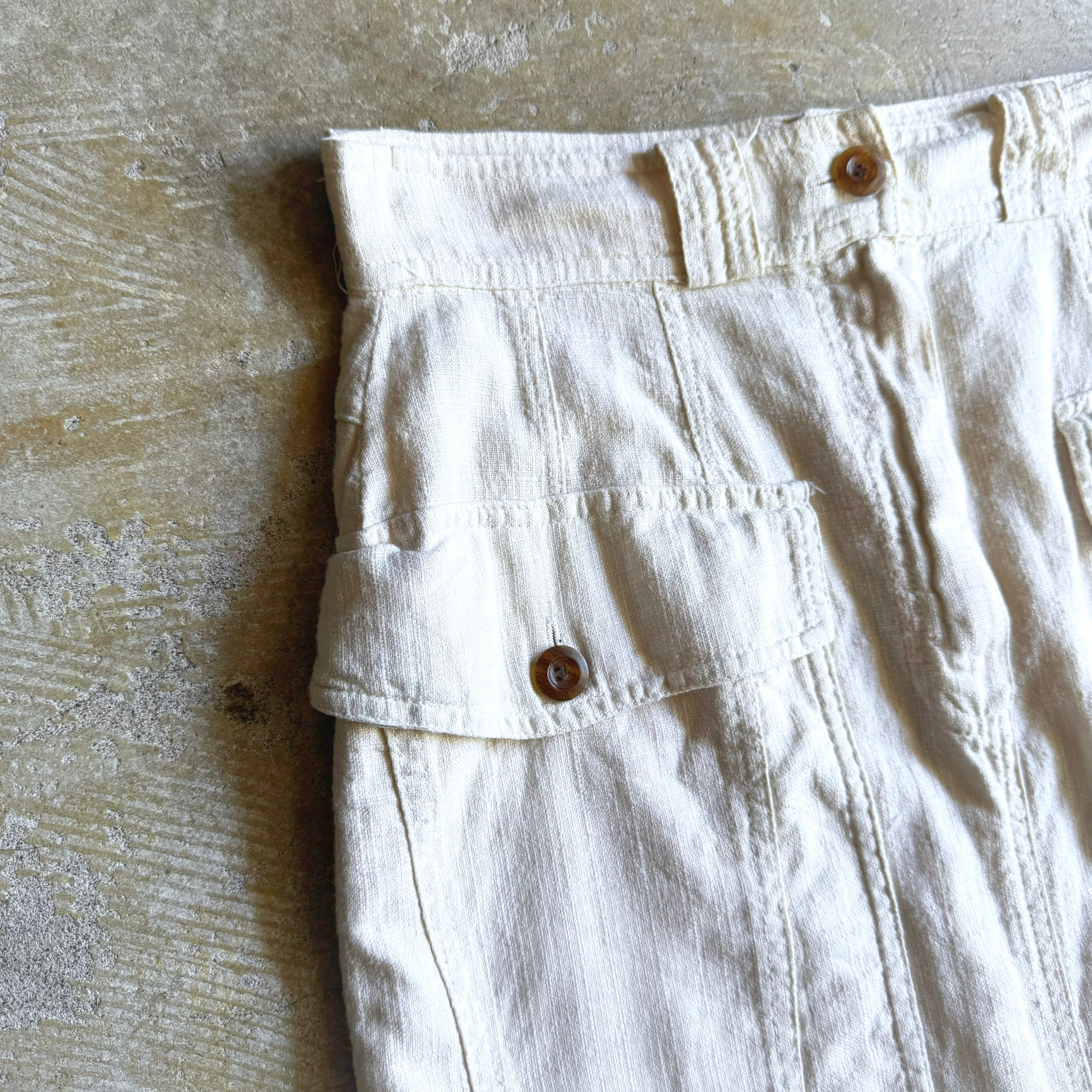 優しい生成りの色合いが印象的なストレートスカート。様々なトップスと合わせやすいすっきりとしたシルエットです。カジュアルにもきれいめにも、幅広いコーディネートでお楽しみいただけます。柔らかなコットンの素材感です。裏地は付いていません。あまり透け感はありませんが、光の当たり方によっては透けることがある為、インナーやボトムスとの重ね着をお勧め致します。