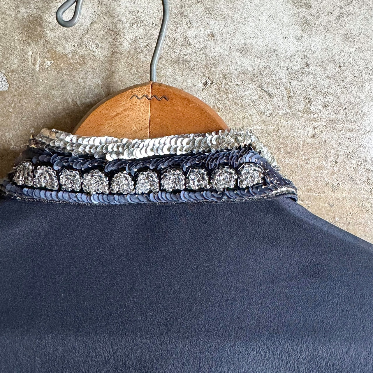 【SOLD OUT】スパンコールデザイン ブラックシルクブラウス USED