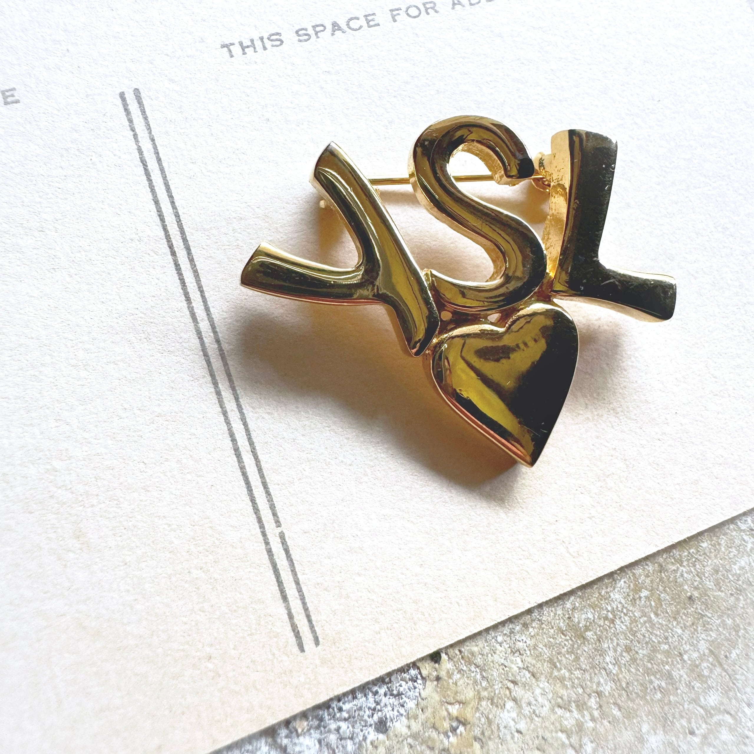 シンプルなYSLのロゴデザインが素敵なブローチ。様々なコーディネートのアクセントになってくれるアイテムです。
