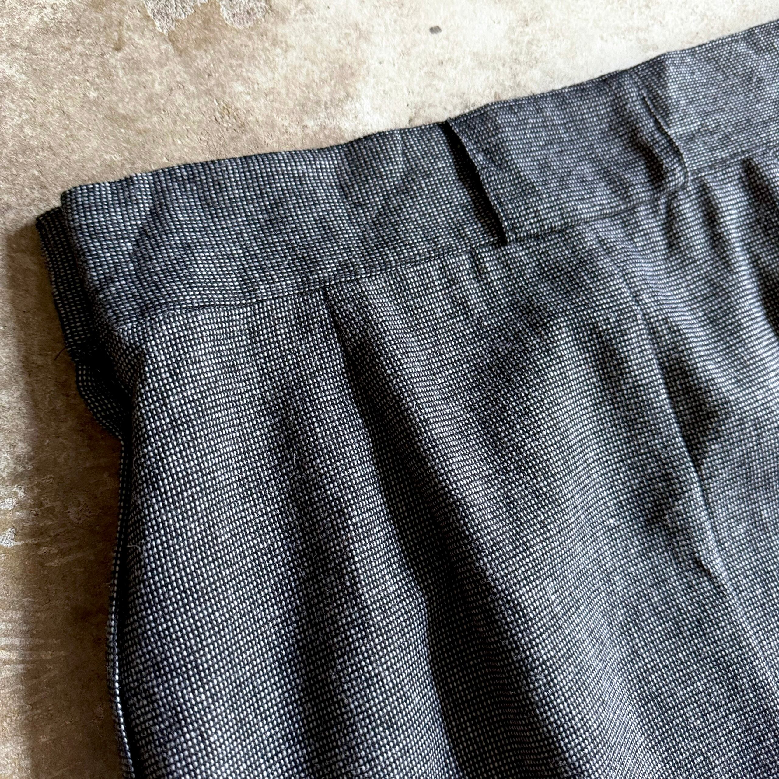 落ち着いたグレーの色合いがシックなロングスカート。ふんわりと広がらす自然に下に落ちるシルエットとバックスリットが大人っぽく、きれいめにもカジュアルにも様々な雰囲気でお楽しみいただけます。パンツとのレイヤードスタイルにもオススメな腰履きできるウエストのデザインです。ベルトループがありますので、お持ちのベルトを使ってウエストマークも可能です。品質表示がありませんが、厚手すぎないウールのようなあたたかみのある素材感です。裏地は付いていませんが透け感はありません。